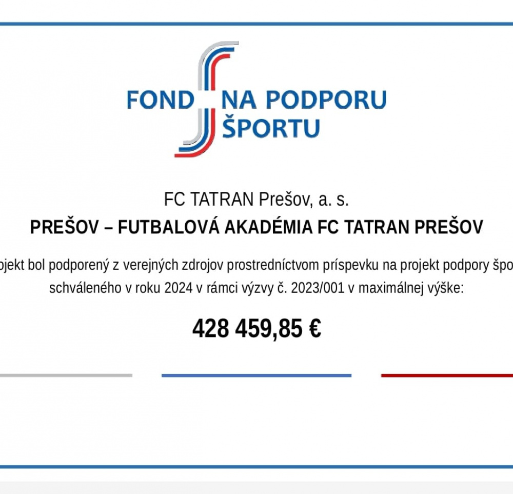 DOTÁCIA OD FONDU NA PODPORU ŠPORTU