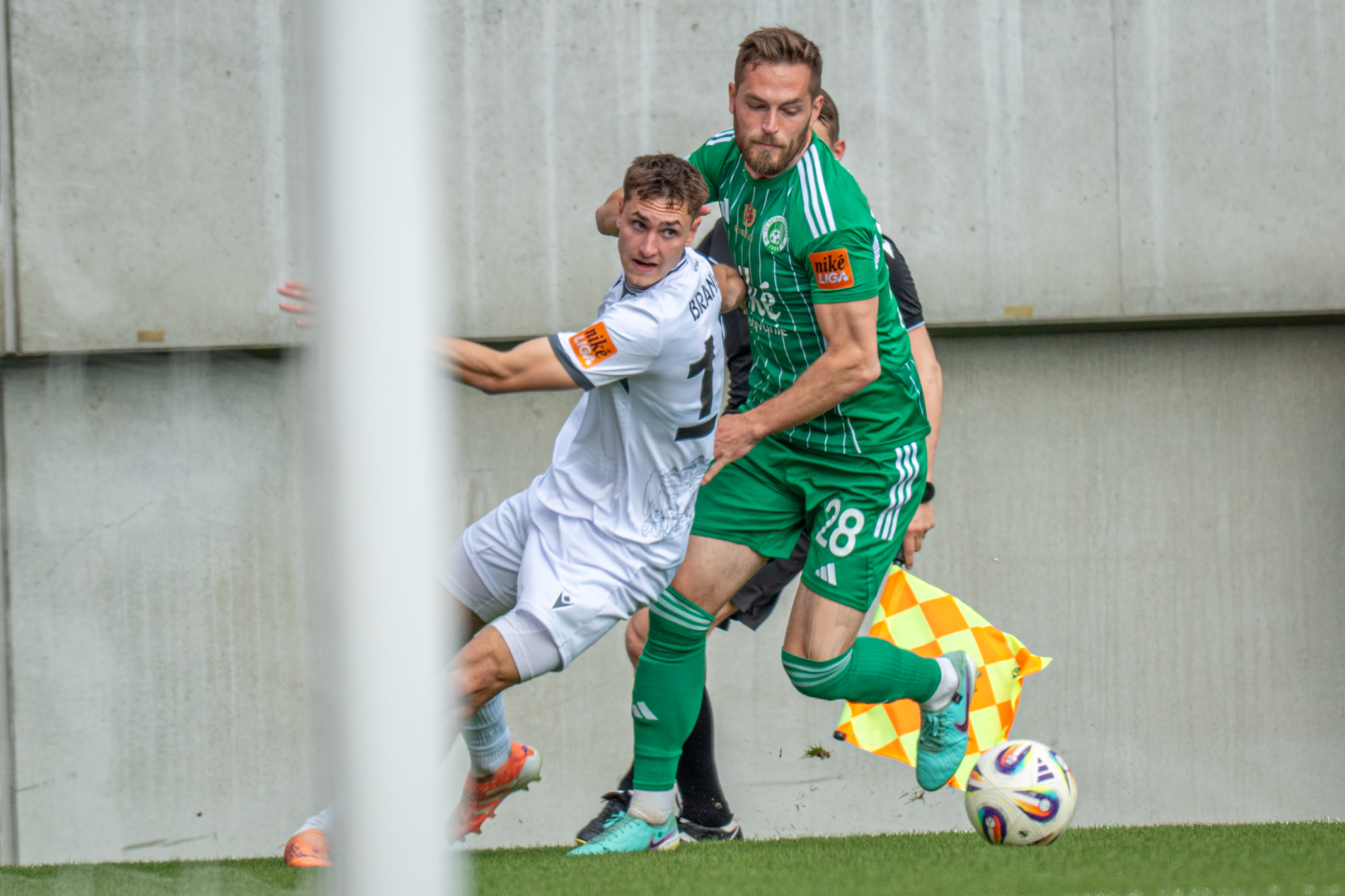V 11. minúte sa nepodarilo odcentrovať z pravej strany Jurajovi Kotulovi. Spätnú prihrávke si v nábehu pýtal Roman Begala. Máme roh, no opakuje sa situácia z 8. minúty.