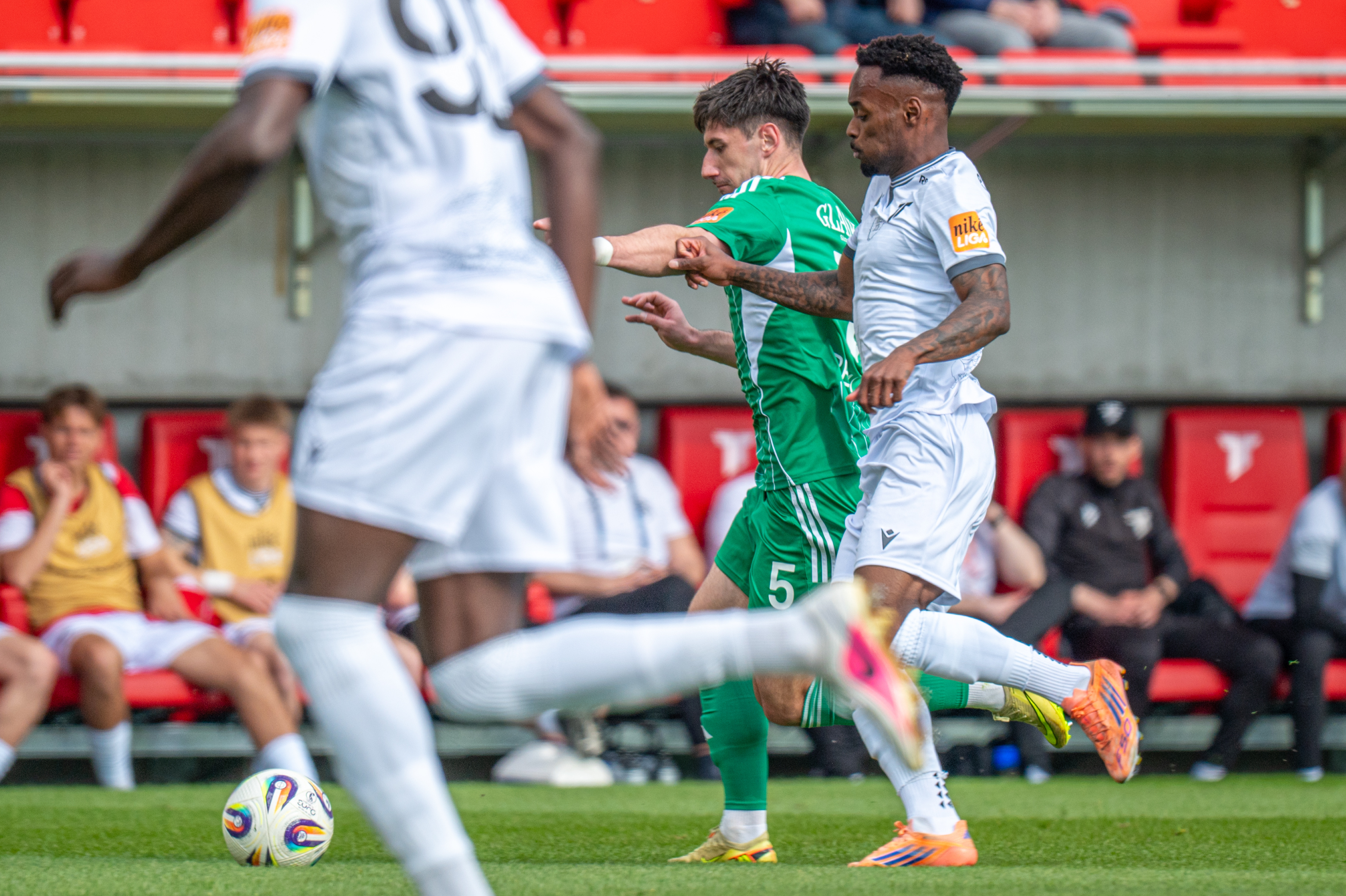 Na začiatku 87. minúty vybojoval v súboji Roman Begala loptu pre Wolsztynskeho, ktorý ju posúva do strany na voľného Simona. Francúz si to zasekáva vo vnútri šestnástky na ľavačku. Defenzíva ho prečítala. Z odrazenej lopty chcel ešte Janko Bernát prekvapivo napriahnuť z prvej, no zámer mu nevyšiel.
