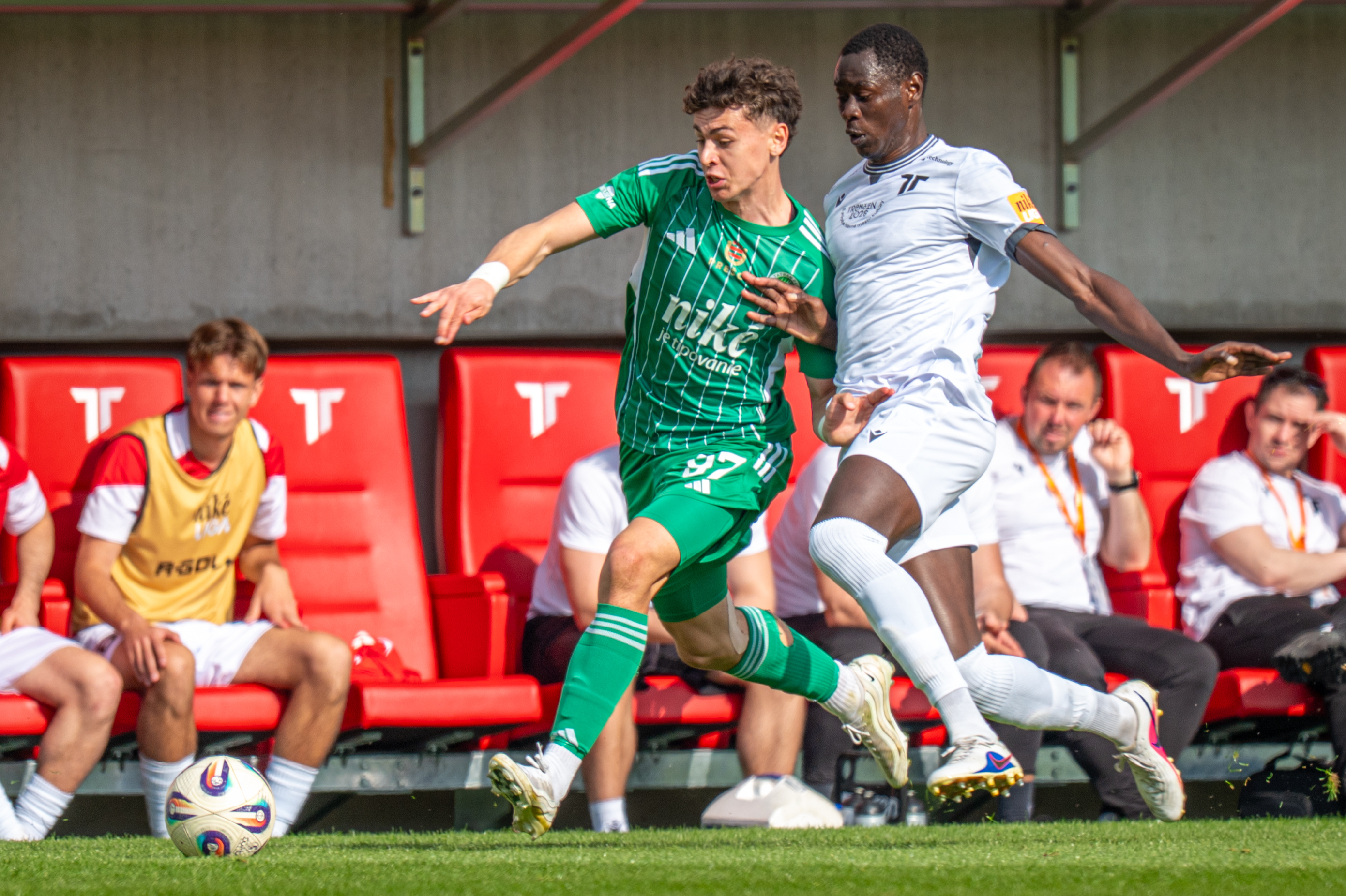 Nebezpečenstvo nám hrozilo v 18. minúta, keď v stredovom kruhu prehral osobný súboj Andy Masaryk. Predskočil ho Diouf, narazil si s Codym Davidom a ľavačkou poslal ukážkovú uličku  – nigérijský útočník sa nakoniec k zakončeniu nedostal, lebo z výhodnej pozície ho výborne vytlačil Jozef Menich. Varovný prst – domáci prešli stredom našej obrany až príliš jednoducho.