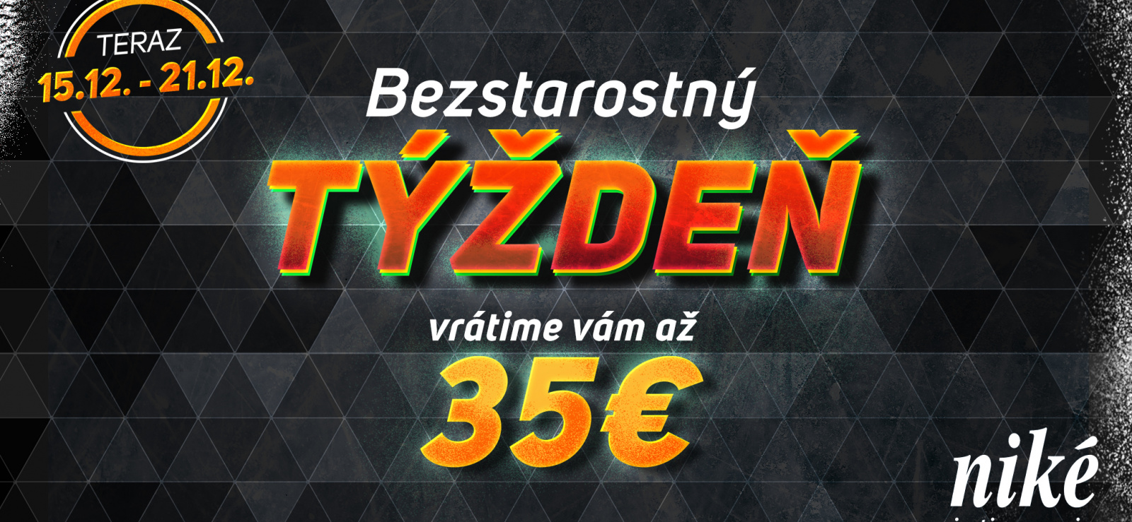 - Každý deň v Bezstarostnom týždni vám Niké vráti 5 € zo stávok za nevýherné tikety. Dokopy tak môžete získať až 35 €