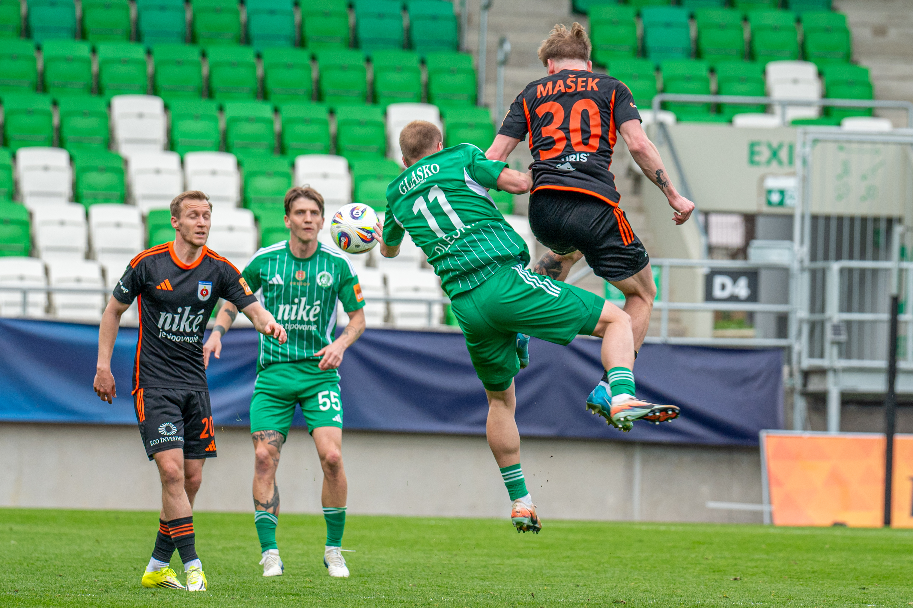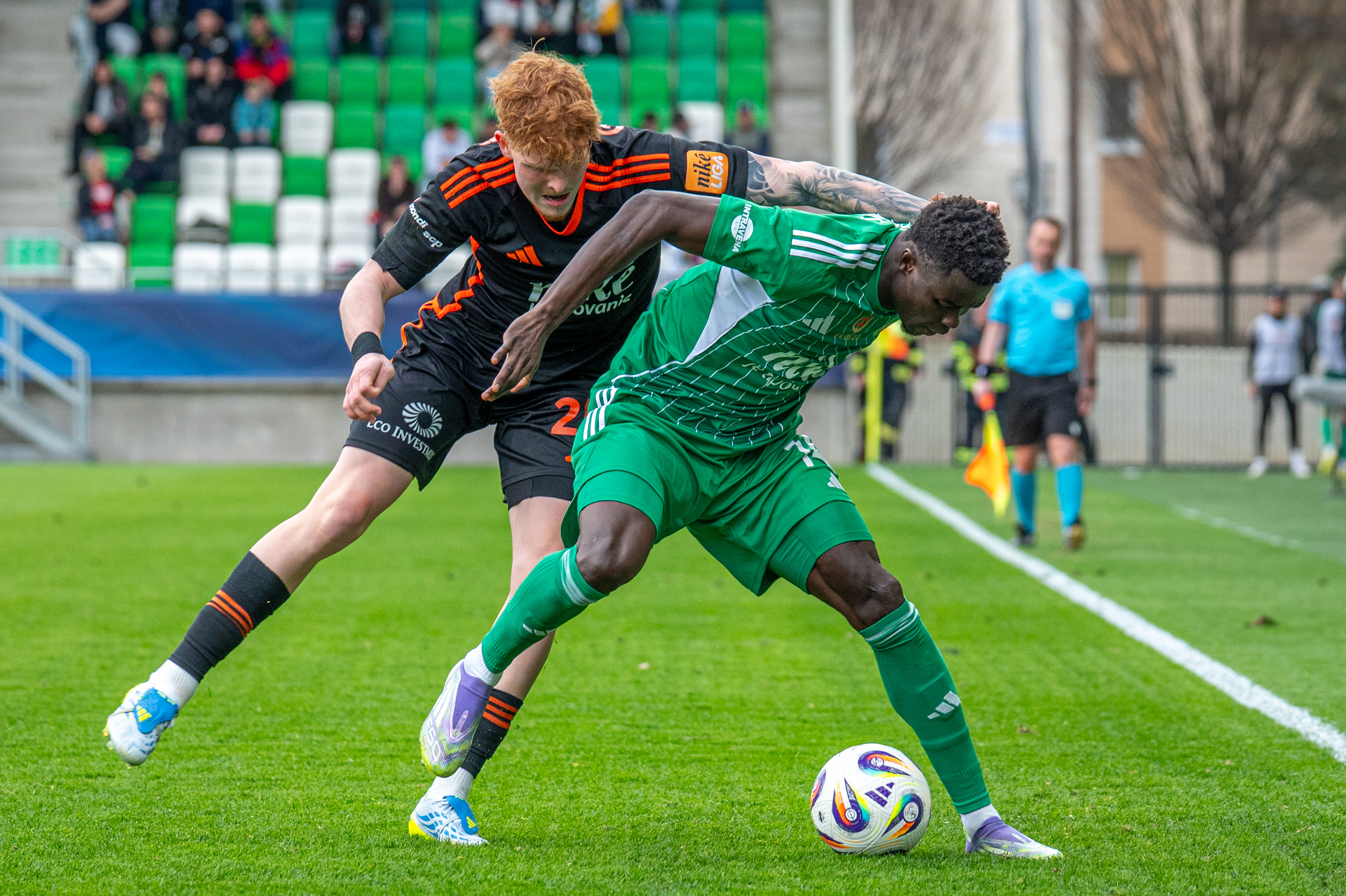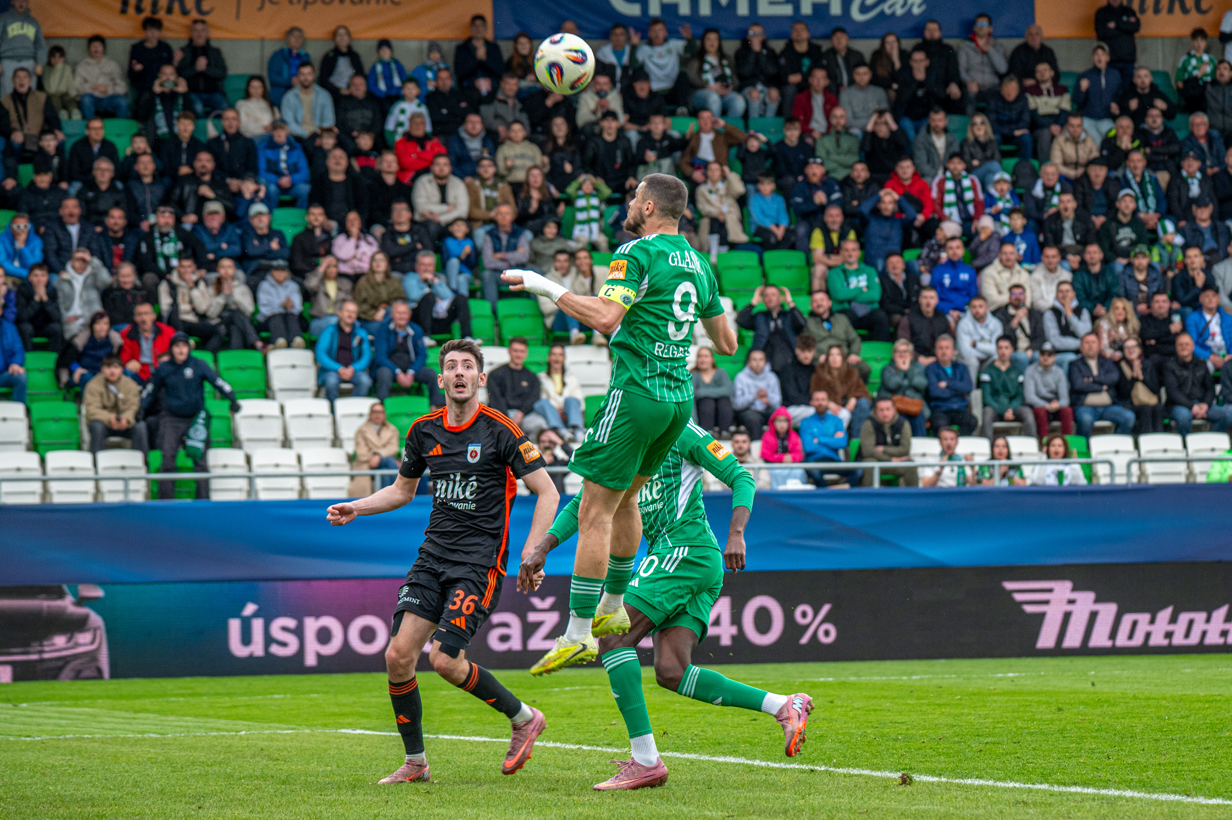 Nebezpečná bola 17. minúta, keď na výborný Mojžišov center z ľavej strany naskakoval Slávik. Tiesnil ho Menich a hlavička šla mimo bránu.