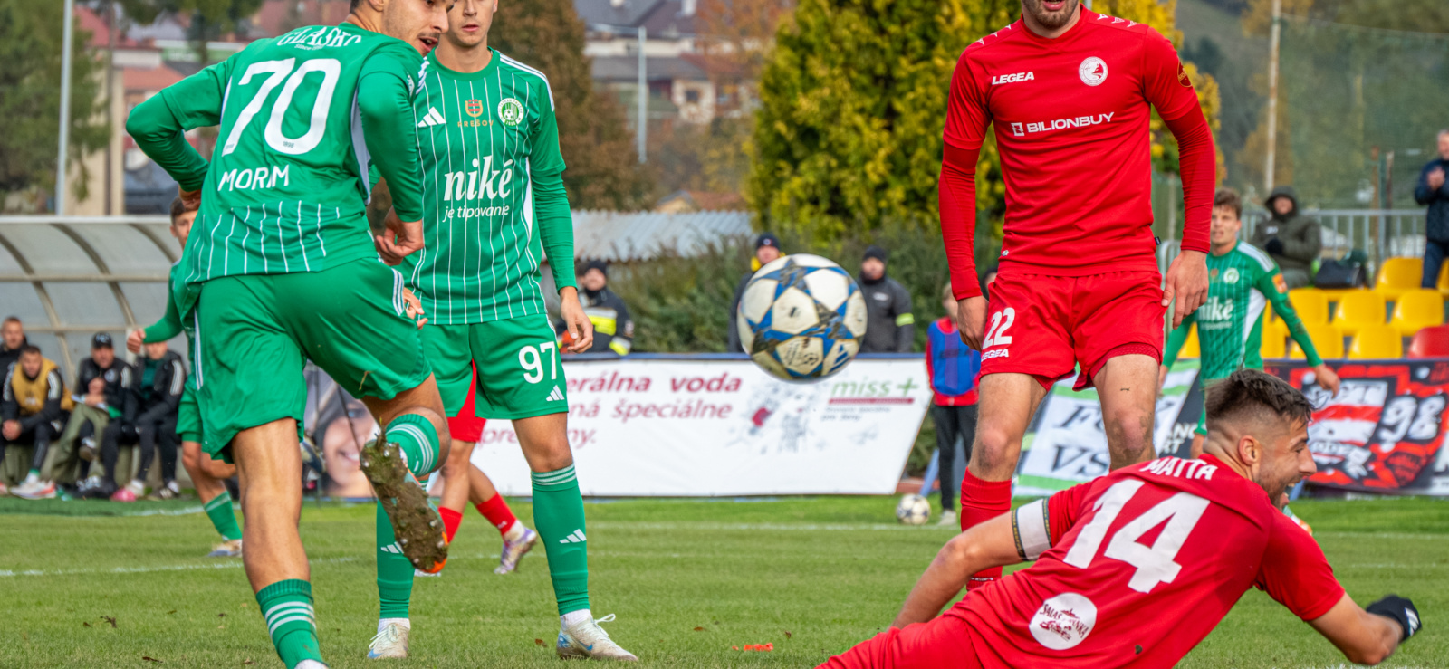Paradoxne prvá strela na bránu v zápase prichádza v 28. minúte z kopačky domáceho Samuela Mašleja. Letí však do stredu brány – bezproblémová práca pre Aďa Knurovského.