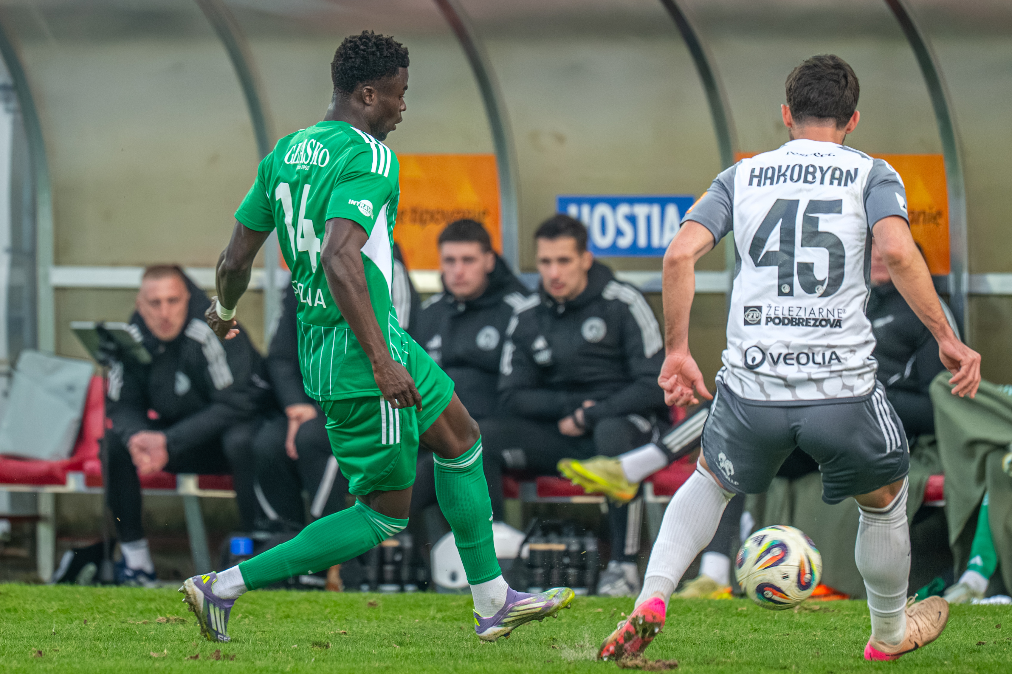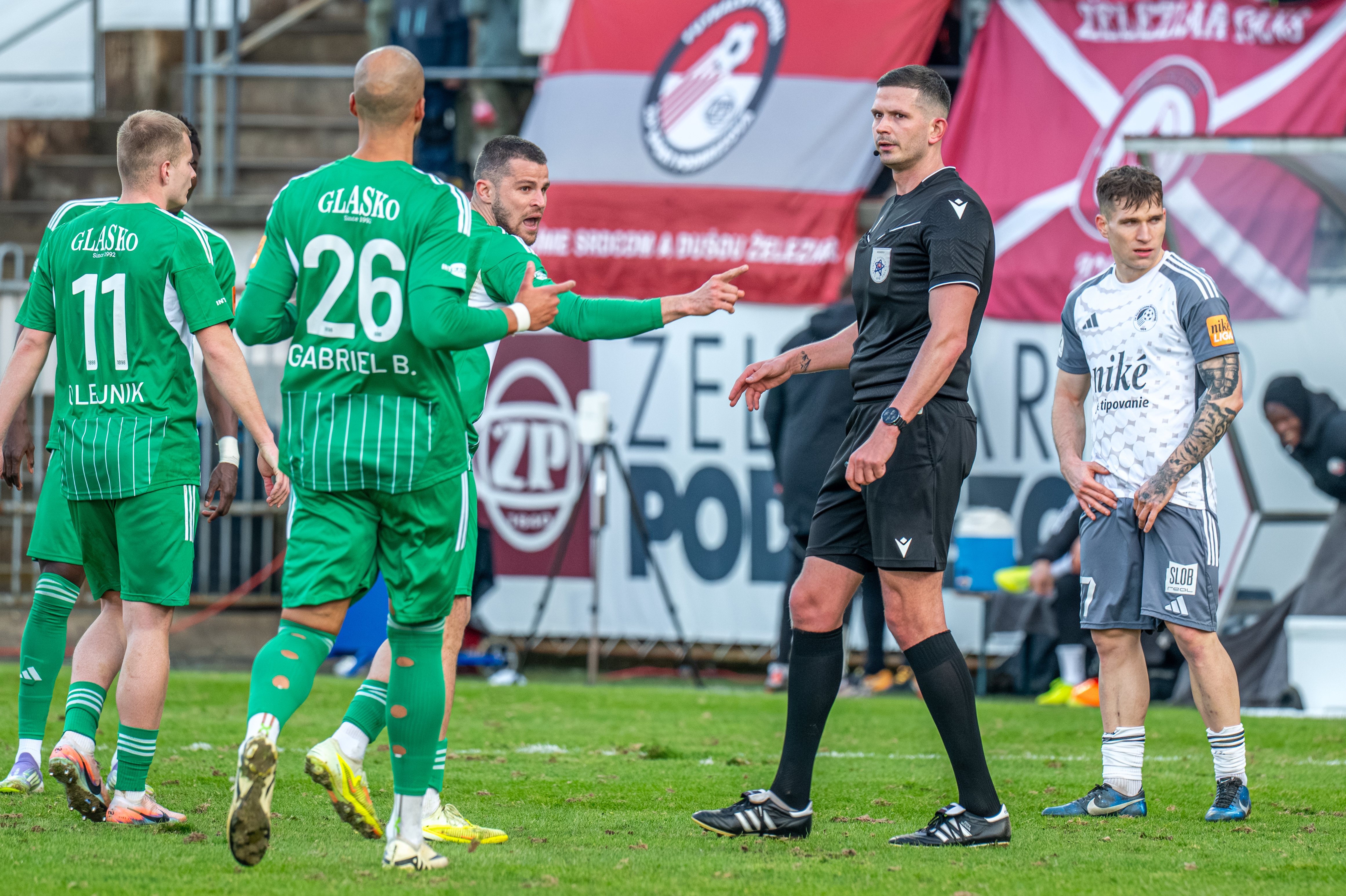 Vo veľkom opäť gestikuluje Martin Regáli, ktorého musia krotiť spoluhráči i tréner Cifranič.  Pri útoku totiž padol na hranici šestnástky a vehementne sa dožadoval faulu.