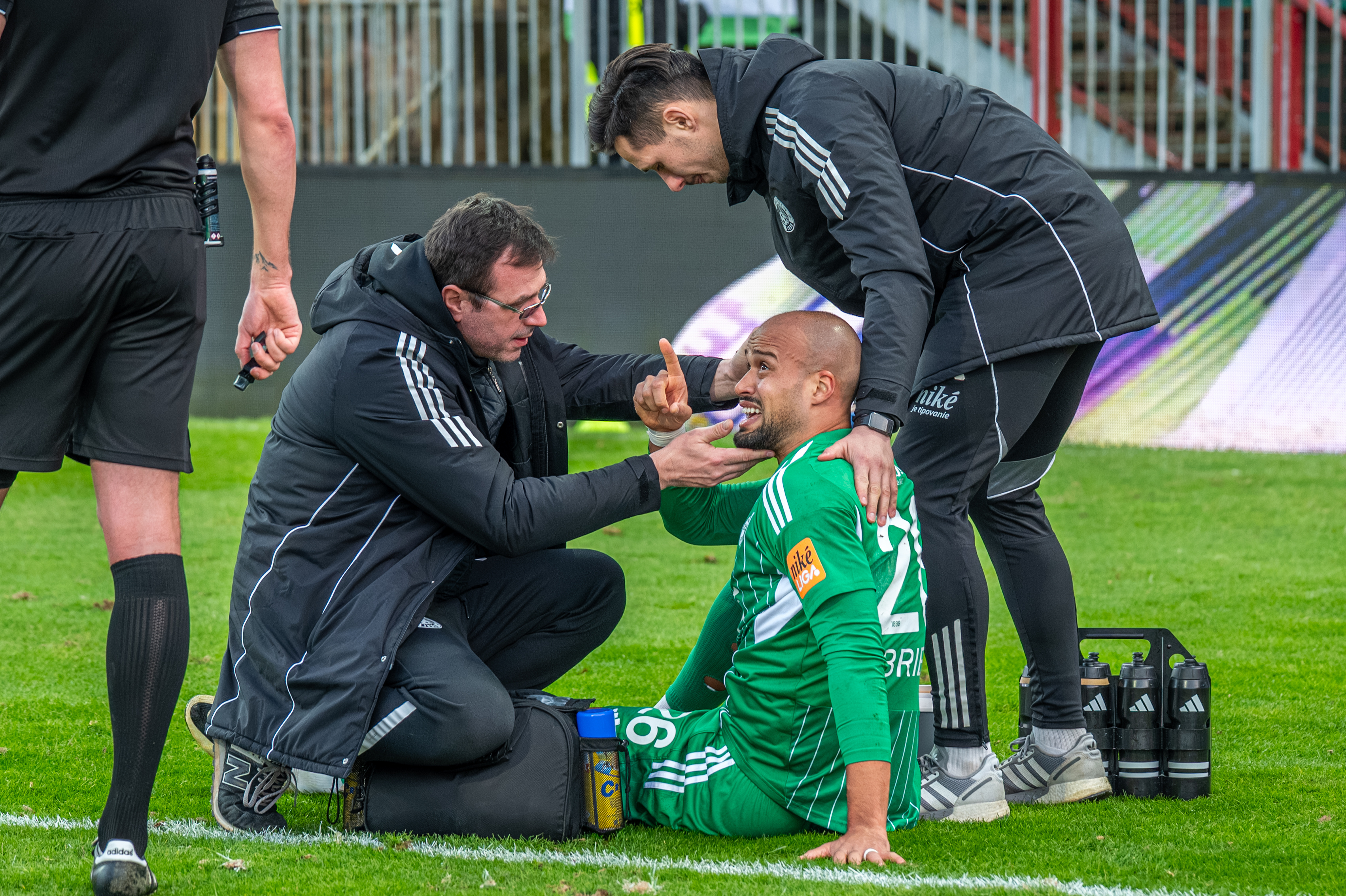 Ošetrovanie Gabriela Barbosu po zákroku, ktorí komentátor na stanici Voyo považoval za jednoznačne prifilmovaný - pískať sa mohlo a to prifarbovanie zo strany hráčov je už na rozhodcoch, aby to dokázali rozlíšiť