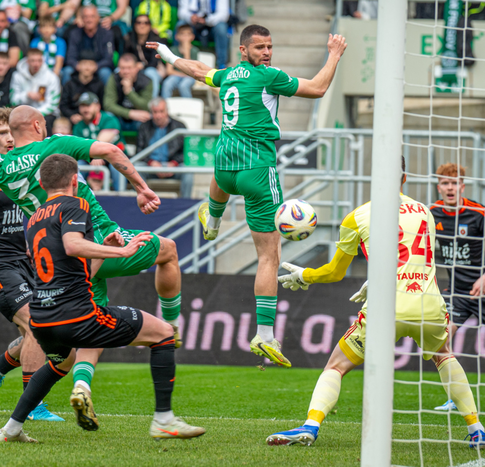 Na trávniku sú prvé minúty oťukávaním a z našej zeleno-bielej perspektívy otvára stretnutie až 8. minúta, keď po výkope Pavla Bajza je Martin Regáli evidentne faulovaný – dokázal však posunúť na Gabriela Barbosu a tomu sa vo vnútri šestnástky podarilo zakončiť. Lopta však letela vysoko nad, keďže mu skĺzla z kopačky, povedané hokejovou terminológiou.